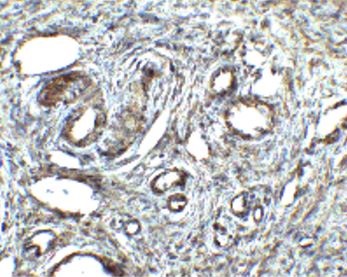 Immunohistochemistry: Human ovary tissue stained with ARG56837 anti-ORAI1 / CRACM1 antibody at 2.5 µg/ml dilution.