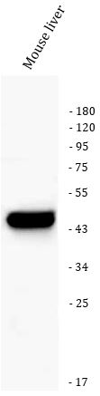 Western blot: Mouse liver stained with ARG45192 anti-OTULIN antibody at 0.5 μg/ml dilution.