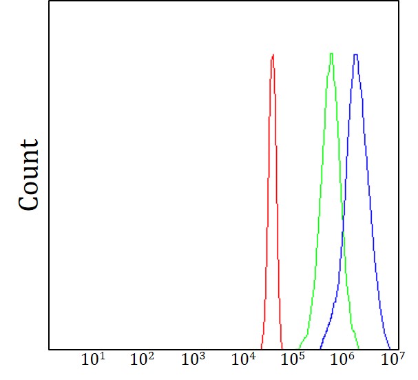 Flow Cytometry: Jk cells stained with ARG43937 anti-OVOL2 antibody (blue) at 1 μg/1x10^6 cells dilution.