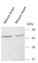 Western blot: Mouse brain and Mouse heart stained with ARG43969 anti-Opioid Receptor antibody at 0.5 μg/mL dilution.