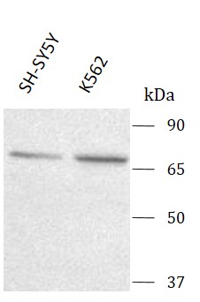 Western blot: SH-SY5Y and K562 stained with ARG43969 anti-Opioid Receptor antibody at 0.5 μg/mL dilution.