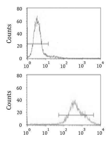 Flow Cytometry: K562 cells stained with ARG55440 anti-PAX3 antibody (bottom histogram) or without primary antibody control (top histogram), followed by incubation with FITC labelled secondary antibody.
