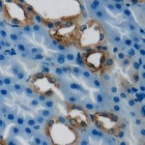 Immunohistochemistry: Formalin-fixed and paraffin-embedded Human kidney tissue. Antigen Retrieval: Heat mediation was performed in Sodium citrate buffer (pH 6.0). The section was then stained with ARG66582 anti-PCCB antibody at room temperature and detected using an HRP conjugated compact polymer system. DAB was used as the chromogen. The section was counterstained with haematoxylin and mounted with DPX.