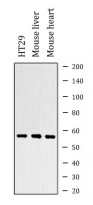 Western blot: HT29, Mouse liver and Mouse heart lysates stained with ARG66582 anti-PCCB antibody.