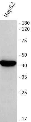 Western blot: HepG2 stained with ARG45935 anti-PCYT2 antibody at 0.5 μg/ml dilution.