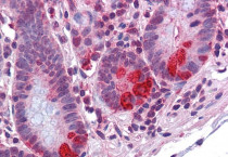 Immunohistochemistry: Paraffin-embedded Human small intestine tissue. Antigen Retrieval: Steam tissue section in Citrate buffer (pH 6.0). The tissue section was stained with ARG64174 anti-PDIA2 / PDIP antibody at 3.75 µg/ml dilution followed by AP-staining.