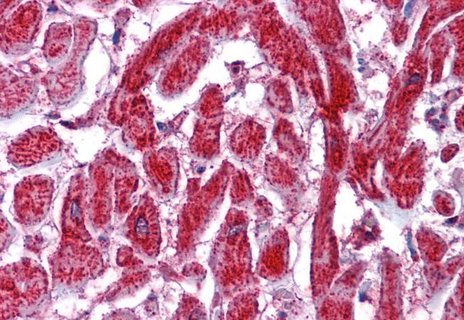 Immunohistochemistry: Paraffin-embedded Human heart tissue. Antigen Retrieval: Steam tissue section in Citrate buffer (pH 6.0). The tissue section was stained with ARG64174 anti-PDIA2 / PDIP antibody at 3.75 µg/ml dilution followed by AP-staining.