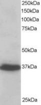 Western Blot: A431 lysate (RIPA buffer, 35 µg total protein per lane) stained with ARG63414 anti-PDLIM4 / RIL antibody at 0.2 µg/ml dilution.