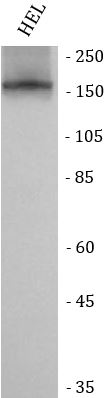Western blot: HEL stained with ARG45937 anti-PDZD8 antibody at 0.5 μg/ml dilution.