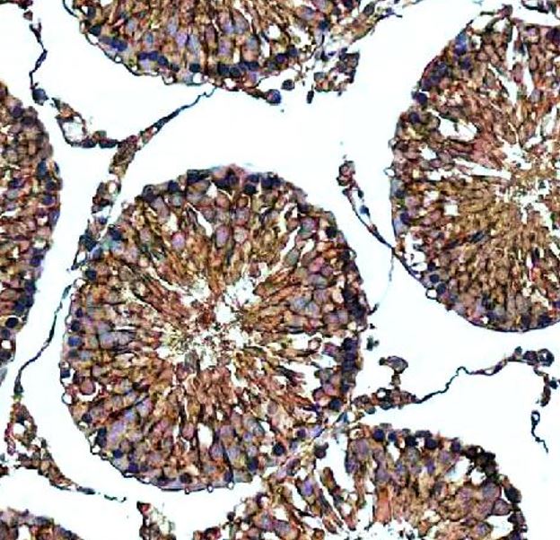 Immunohistochemistry: Rat testis stained with ARG45937 anti-PDZD8 antibody at 2 μg/ml dilution.