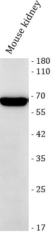 Western blot: Mouse kidney stained with ARG45938 anti-PDZK1 antibody at 0.5 μg/ml dilution.