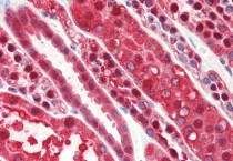Immunohistochemistry: Paraffin-embedded Human kidney tissue. Antigen Retrieval: Steam tissue section in Citrate buffer (pH 6.0). The tissue section was stained with ARG64075 anti-PEBP1 / RKIP antibody at 5 µg/ml dilution followed by AP-staining.