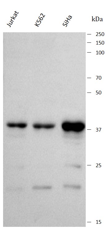 | Storage Instruction | For continuous use, store undiluted antibody at 2-8°C for up to a week. For long-term storage, aliquot and store at -20°C or below. Storage in frost free freezers is not recommended. Avoid repeated freeze/thaw cycles. Suggest spin the vial prior to opening. The antibody solution should be gently mixed before use. |