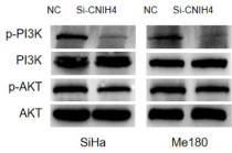 Western blot: SiHa and Me180 stained with ARG51810 anti-PI3 Kinase p85 / p55 phospho (Tyr467 / Tyr199) antibody.