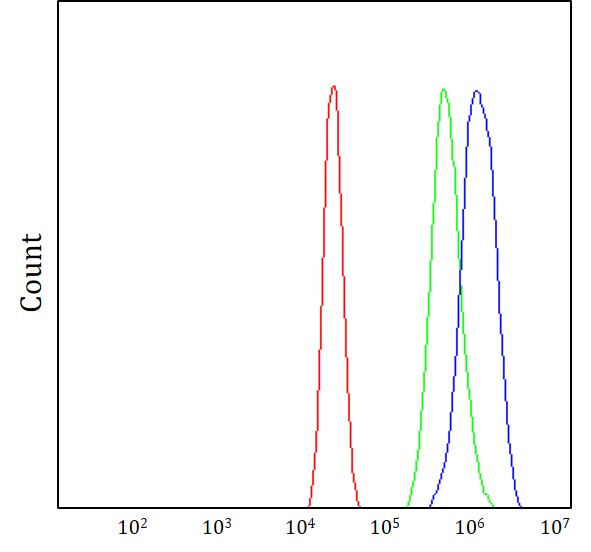 Flow Cytometry: MCF-7 stained with ARG44468 anti-PI4K2B antibody at 1 μg/10^6 cells dilution.