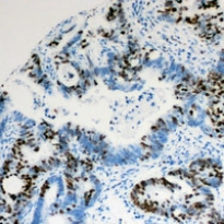 Immunohistochemistry: Formalin-fixed and paraffin-embedded Human colon cancer tissue section. Antigen Retrieval: Heat mediation was performed in Sodium citrate buffer (pH 6.0). The section was then stained with ARG66623 anti-PIAS1 antibody at room temperature and detected using an HRP conjugated compact polymer system. DAB was used as the chromogen. The section was then counterstained with haematoxylin and mounted with DPX.