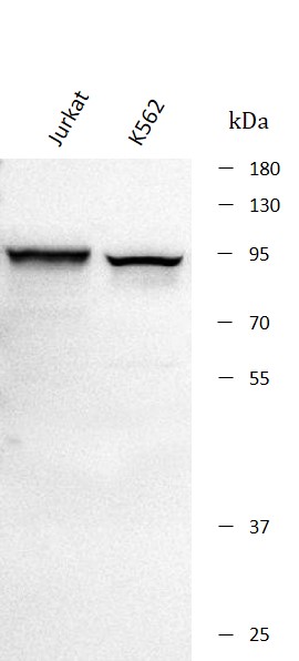 Western blot: Jurkat and K562 stained with ARG44471 anti-PIK3R5 antibody at 0.5 μg/mL dilution.