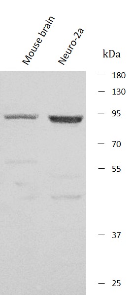 Western blot: Mouse brain and Neuro-2a stained with ARG44471 anti-PIK3R5 antibody at 0.5 μg/mL dilution.