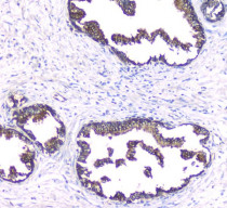 Immunohistochemistry: Paraffin-embedded Human prostatic cancer tissue. Antigen Retrieval: Heat mediation was performed in Citrate buffer (pH 6.0) for 20 min. The tissue section was blocked with 10% goat serum. The tissue section was then stained with ARG42611 anti-PKC beta I antibody at 1 µg/ml dilution, overnight at 4°C.