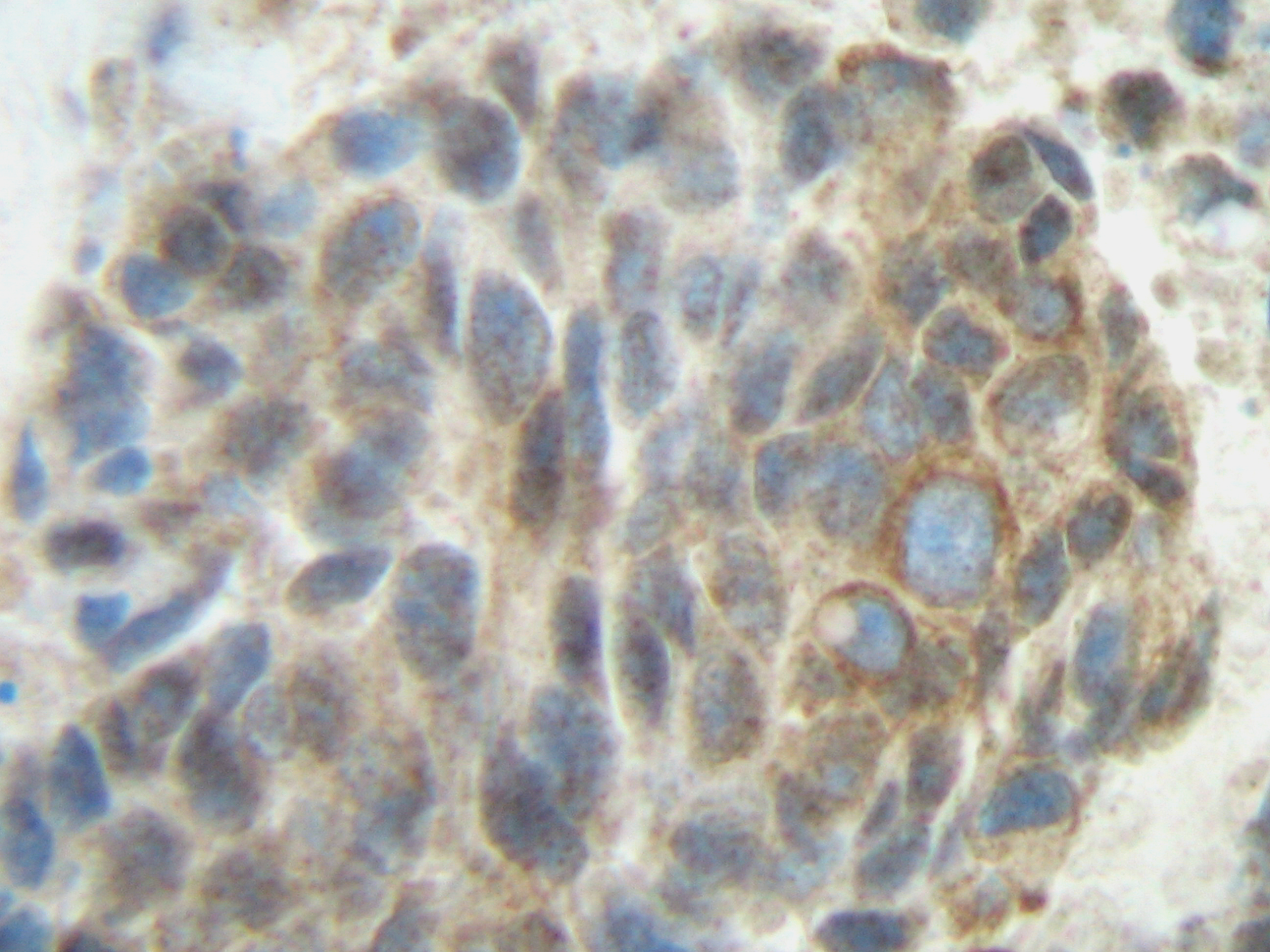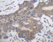 Immunohistochemistry: Formalin-fixed and paraffin-embedded sections of Human breast invasive ductal carcinoma. The recommended ARG56710 anti-PLGF1 antibody concentration is 2.0 µg/ml with an overnight incubation at 4°C. An HRP-labeled polymer detection system was used with a DAB chromogen. Antigen Retrieval: Boil tissue section in Sodium Citrate buffer (pH 6.0) followed by cooling at RT for 20 min.
