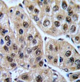 Immunohistochemistry: Formalin-fixed and paraffin-embedded Human hepatocarcinoma tissue stained with ARG41222 anti-POLR1C antibody.