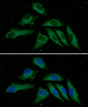 Immunoflorescense: HeLa cell line stained with ARG57029 anti-PPM1F antibody [6D11] at 1:100 (Green).
