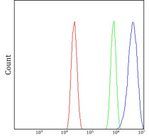 Flow Cytometry: MCF-7 cells stained with ARG43950 anti-PPP1R15B antibody (blue) at 1 μg/1x10^6 cells dilution.