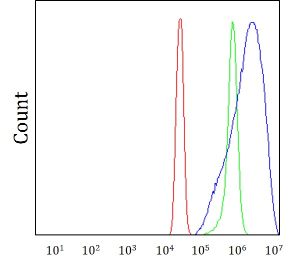 Flow Cytometry: SiHa cells stained with ARG43928 anti-PPP2R5D antibody (blue) at 1 μg/1x10^6 cells dilution.