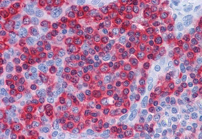 Immunohistochemistry: Paraffin-embedded Human tonsil tissue. Antigen Retrieval: Steam tissue section in Citrate buffer (pH 6.0). The tissue section was stained with ARG63978 anti-PREP / Prolyl Endopeptidase antibody at 3.75 µg/ml dilution followed by AP-staining.