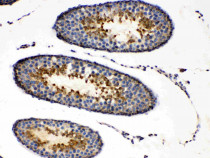 Immunohistochemistry: Paraffin-embedded Rat testis tissue stained with ARG59011 anti-PRKAR1A / PKA RI alpha antibody at 1 µg/ml dilution.