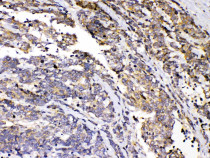Immunohistochemistry: Paraffin-embedded Human lung cancer tissue stained with ARG59011 anti-PRKAR1A / PKA RI alpha antibody at 1 µg/ml dilution.