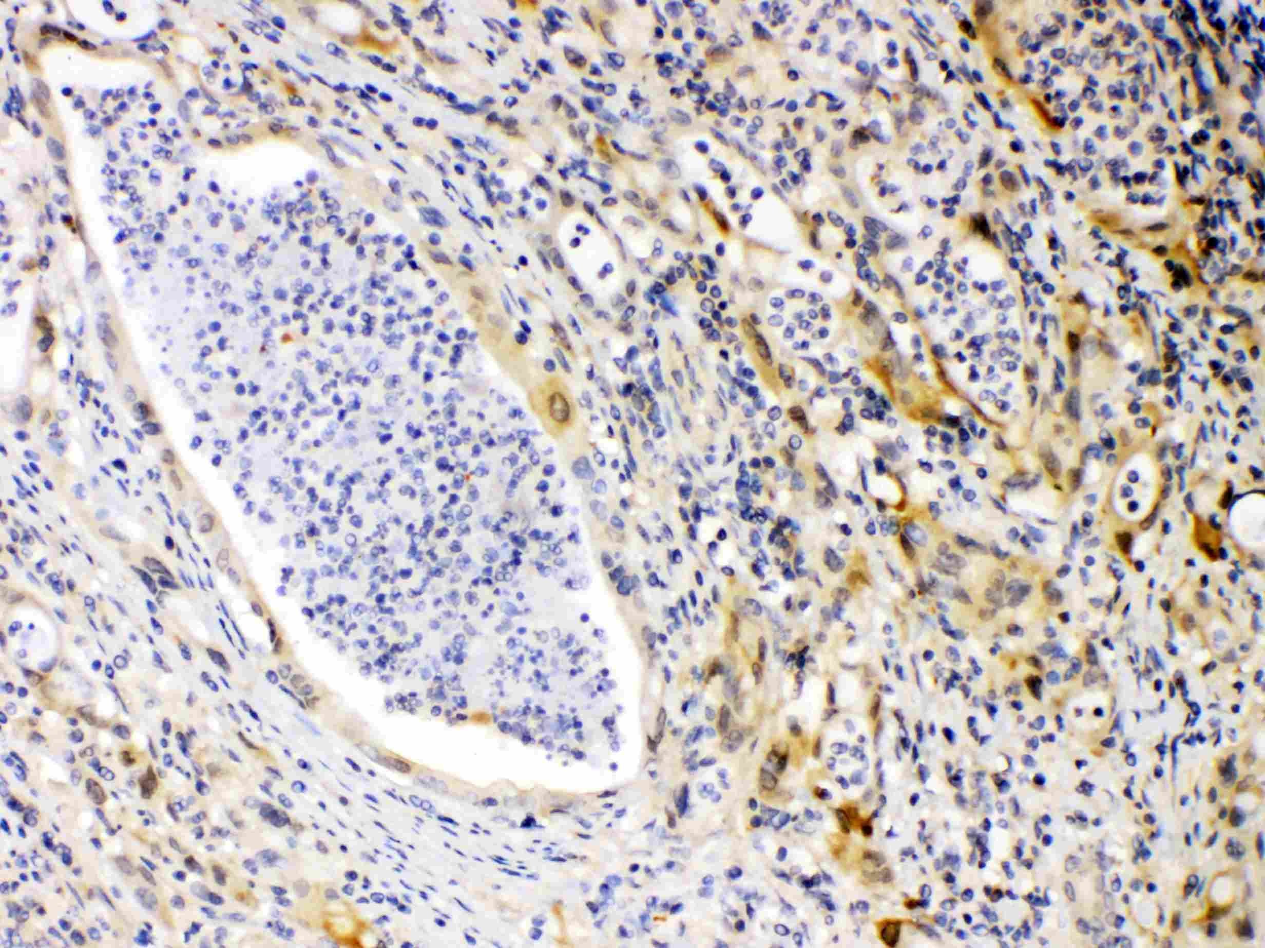 Immunohistochemistry: Paraffin-embedded Human intestinal cancer tissue stained with ARG59011 anti-PRKAR1A / PKA RI alpha antibody at 1 µg/ml dilution.