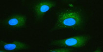 Immunofluorescence: A549 cells stained with ARG43955 anti-PRKCSH antibody at 5 μg/ml dilution.