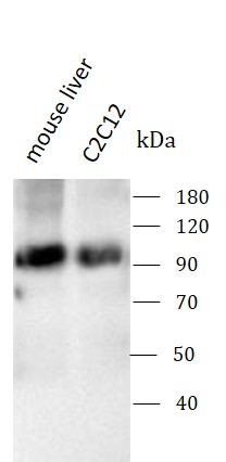 Western blot: mouse liver and C2C12 stained with ARG43955 anti-PRKCSH antibody at 0.5 μg/ml dilution.