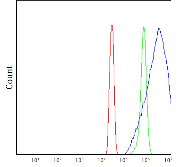 Flow Cytometry: SiHa cells stained with ARG43955 anti-PRKCSH antibody (blue) at 1 μg/1x10^6 cells dilution.