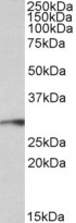 Western blot: 35 µg of Human muscle lysate (in RIPA buffer) stained with ARG64375 anti-PRRX1 antibody at 0.3 µg/ml dilution and incubated at RT for 1 hour.
