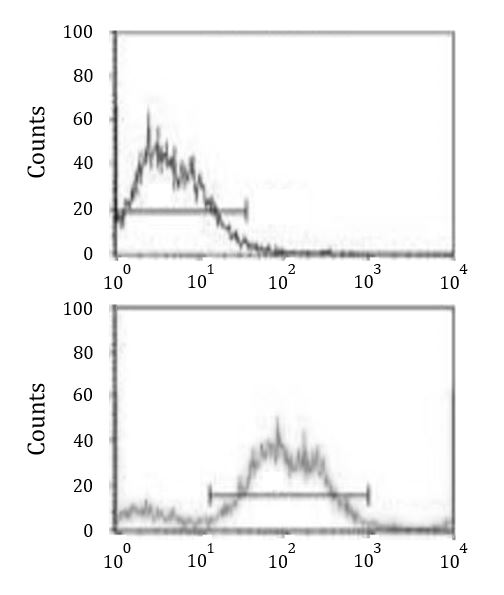 Flow Cytometry: SK-BR-3 cells stained with ARG42076 anti-PTAR1 antibody (bottom histogram) or without primary antibody as control (top histogram), followed by incubation with FITC labelled secondary antibody.