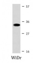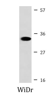 Western blot: 35 µg of WiDr cell lysate stained with ARG42482 anti-PYCR1 antibody.