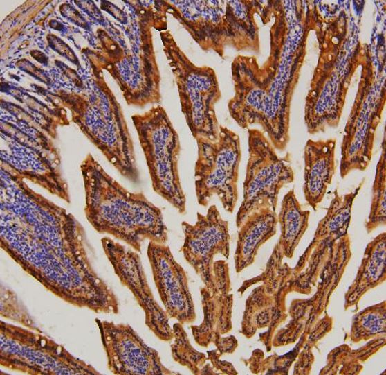 Immunohistochemistry: Mouse intestine stained with ARG45161 anti-PPA2 antibody at 1 μg/ml dilution.