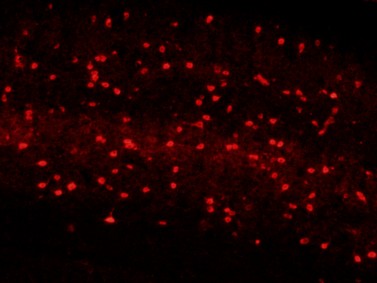 Immunohistochemistry: Frozen Mouse Brain stained with ARG10725 anti-Parvalbumin antibody [3C9] (green) at 1:250 dilution.