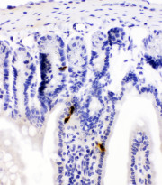Immunohistochemistry: Paraffin-embedded Rat intestine tissue. Antigen Retrieval: Heat mediation was performed in Citrate buffer (pH 6.0, epitope retrieval solution) for 20 min. The tissue section was blocked with 10% goat serum. The tissue section was then stained with ARG40991 anti-Peptide YY antibody at 1 µg/ml dilution, overnight at 4°C.