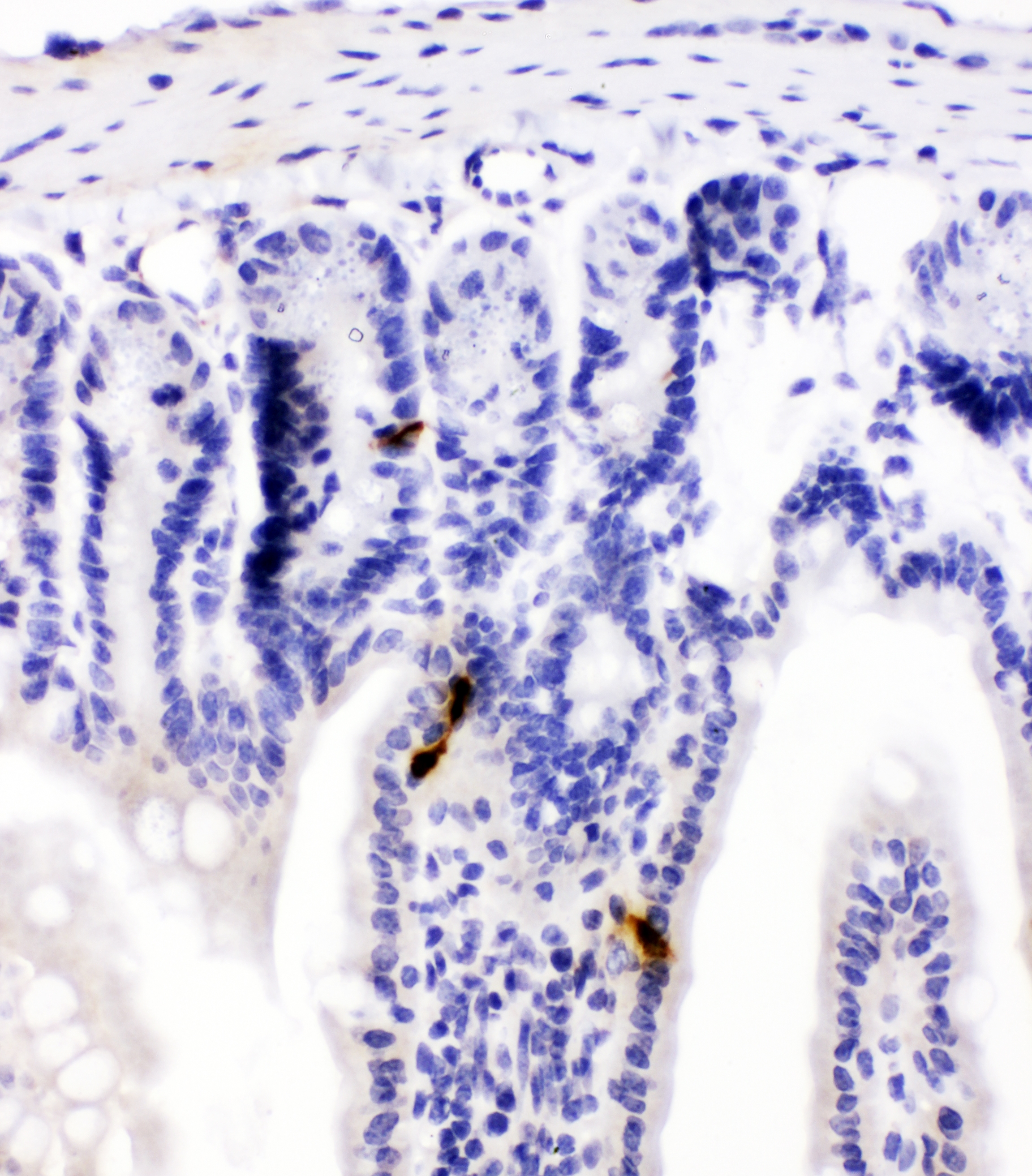 Immunohistochemistry: Paraffin-embedded Mouse intestine tissue. Antigen Retrieval: Heat mediation was performed in Citrate buffer (pH 6.0, epitope retrieval solution) for 20 min. The tissue section was blocked with 10% goat serum. The tissue section was then stained with ARG40991 anti-Peptide YY antibody at 1 µg/ml dilution, overnight at 4°C.