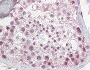 Immunohistochemistry: paraffin embedded Human Testis. (Steamed antigen retrieval with citrate buffer pH 6) stained with ARG63605 anti-Pescadillo antibody at 3.8 µg/ml dilution followed by AP-staining.