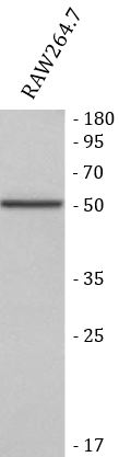 Western blot: RAW264.7 stained with ARG45953 anti-Phosphoribosyl pyrophosphate amidotransferase antibody at 0.5 μg/ml dilution.