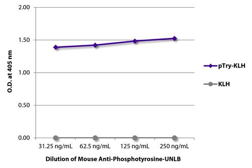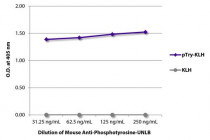 ELISA: The plate was coated with KLH and KLH conjugated to phosphotyrosine (pTry-KLH). Phosphotyrosine was detected with serially diluted ARG65767 anti-Phosphotyrosine antibody [PY20] followed by ARG21894 Goat anti-Mouse IgG2b antibody (HRP) (pre-adsorbed).