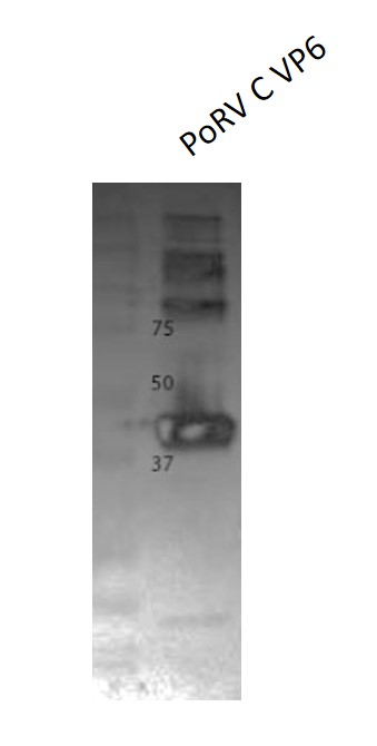 Western blot: PoRV C VP6 stained with ARG70023 anti-Porcine Rotavirus VP6 (Serogroup C) antibody [11H3].