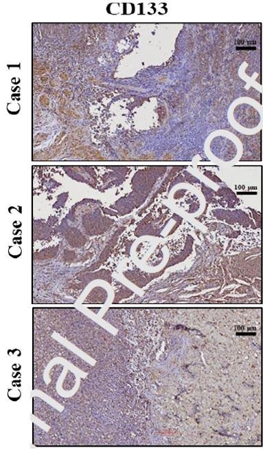 Immunohistochemistry: Human UTUC stained with ARG54138 anti-Prominin 1 antibody.