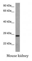 Western blot: Mouse kidney lysate stained with ARG42601 anti-RAB1A antibody at 1 µg/ml dilution.