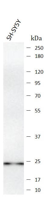 Western blot: SH-SY5Y stained with ARG44903 anti-RAB6B antibody at 1 µg/mL dilution.