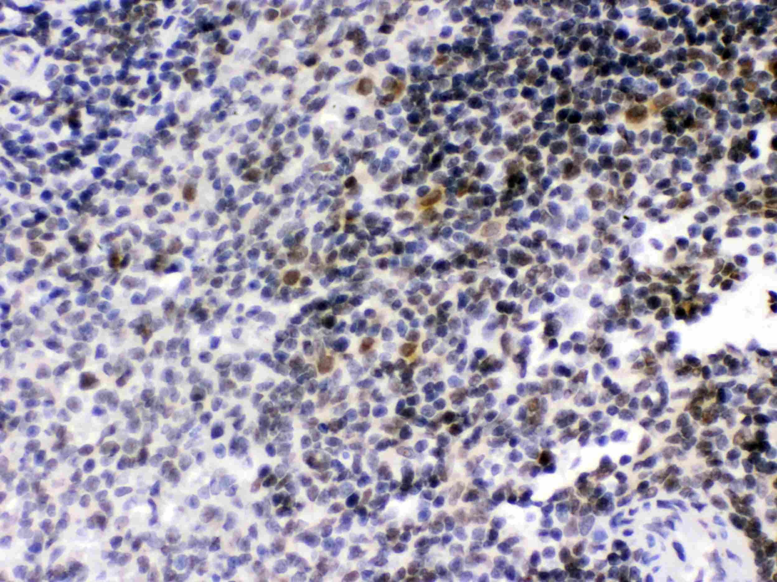 Immunohistochemistry: Paraffin-embedded Mouse spleen tissue stained with ARG59041 anti-RAG2 antibody.
